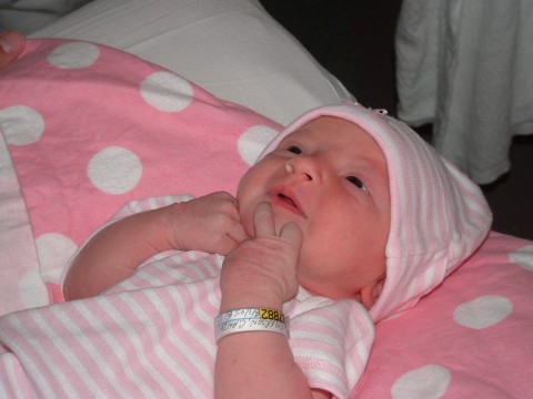 just a short week and a half later, we were spending our "honeymoon" in the hospital welcoming our sweet baby girl into the world. a tiny bundle [6 lbs. and 14 oz. to be exact] was given to us at 6:11 p.m. [12 1/2 hours and 1 c-section later]. again, my world was changed forever.
